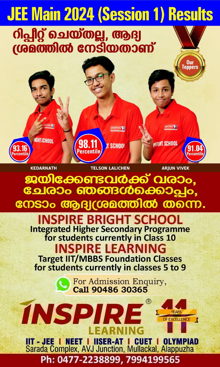 Scored 1198/1200 with full A+ and perfect score in all science subjects and maths, sheclaerd NEST, KEAM (ENG RANK -830) CUSAT CAT, CUET AND IISER AAPTITUDE TEST. She secured admission to the Indian Institute of Science Education and Research, TVM.